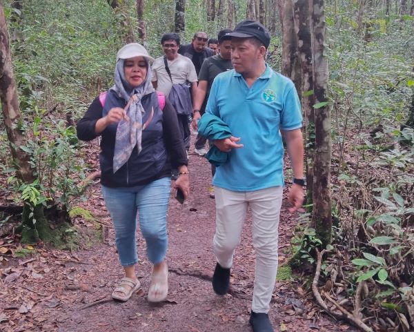 Direktur AAL, Bandung Sahari (kanan), ikut menyusuri jalan tanah menuju area food feeding. Foto: Taufik Alwie